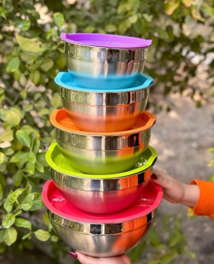 خانه ظروف سرو و پذیرایی کاسه استیل yyi دردار پنج سایزی