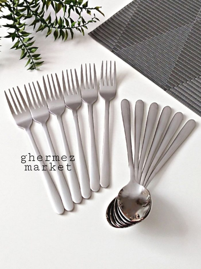 هر دست شامل شش عدد قاشق و شش عدد چنگال